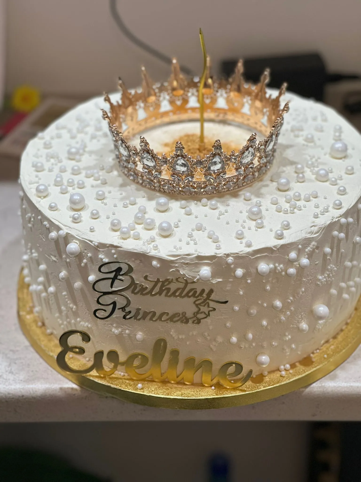 Eveline a avut un tort de prințesă, elegant și delicat, alb, decorat cu o coroniță aurie care a atras imediat toate privirile. Tortul a adus un aer de poveste momentului în care toți copiii s-au adunat pentru a cânta „La mulți ani”.