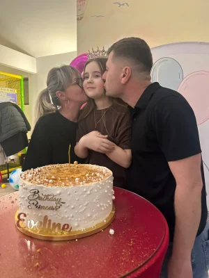 Cu zâmbetul pe buze, Eveline a suflat în lumânări, în aplauzele prietenilor ei – un moment simplu, dar plin de emoție.