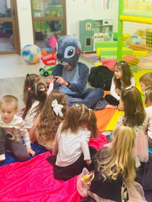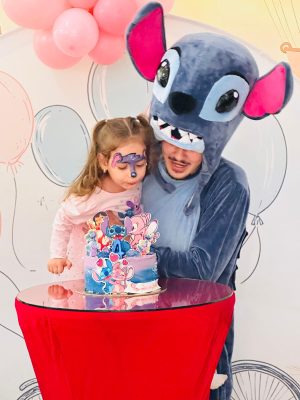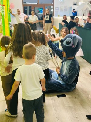 Îmbrăcat într-un costum adorabil, plin de energie și umor, Stitch a adus un val de entuziasm printre copii. A dansat, a făcut poze, a glumit și a transformat totul într-un spectacol interactiv. Copiii l-au urmărit cu ochii mari, iar Ema – micuța sărbătorită – nu și-a mai putut opri râsetele.
