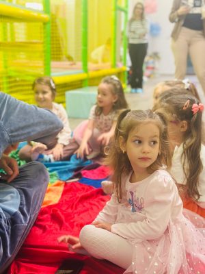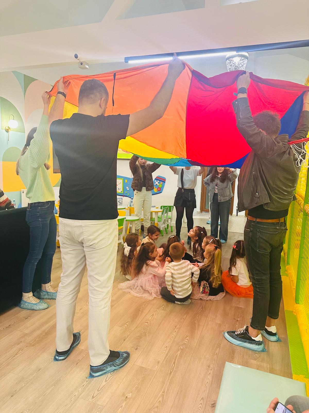 A fost o explozie de bucurie: jocuri interactive, dansuri haioase, pictură pe față, baloane modelate și activități care au făcut timpul să zboare.