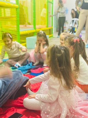 Încă de la intrare, atmosfera a fost una de basm — baloane pastelate, zâmbete, lumini și o energie pozitivă care s-a simțit în fiecare colț. Părinții și prietenii Emei au fost întâmpinați cu voie bună, muzică și activități care au transformat aniversarea într-o adevărată aventură pentru cei mici.